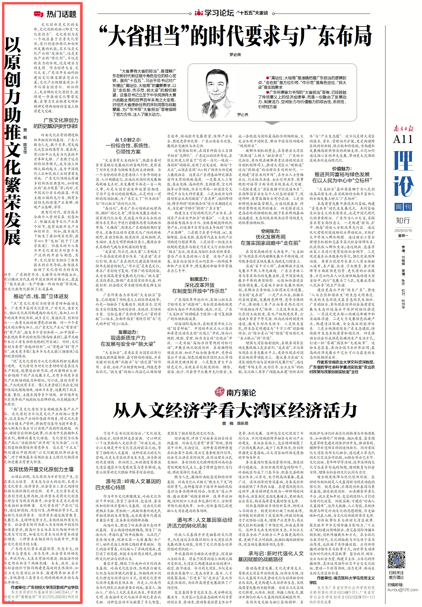 文化创新是文化的生命,文化创新的核心即是“文化原创力”。文化原创力是一个地区基于自身文化资源,进行创造性转化和创新性发展的机能,其不仅是文化产业的“发动机”,还是其他产业的“催化剂”,不仅是软实力的体现,还是硬实力的支撑。作为经济大省、文化大省,广东近年来始终把建设文化强省摆在突出位置,文化产业规模连续20多年位居全国首位。新征程上,充分释放文化原创力,能够进一步推动文化繁荣发展,在努力交出物质文明和精神文明两份好的答卷上取得更大突破。